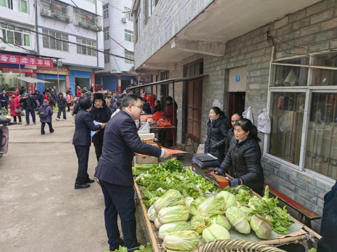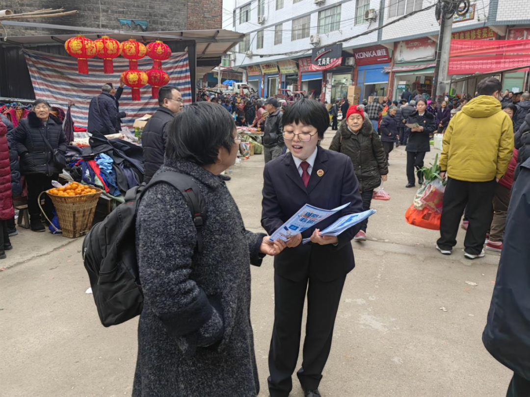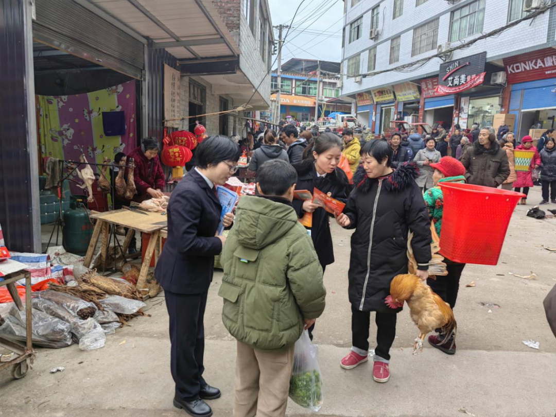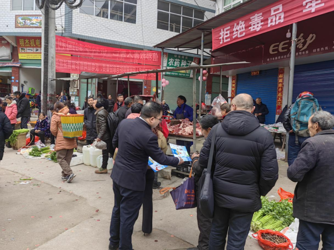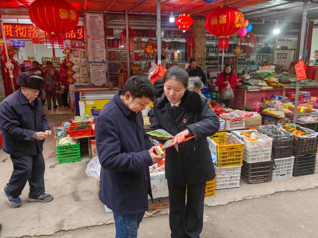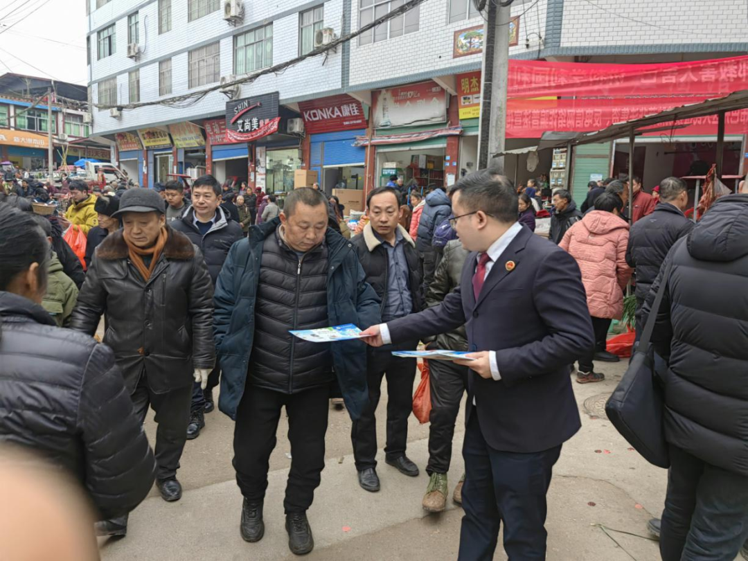在新春佳节到来之际,巴中市巴州区人民检察院检察干警走进清江镇永兴社区的街头巷尾,向正在购置年货的群众开展普法宣传。
