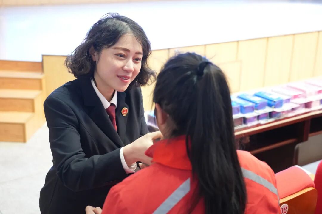 随后,“心语姐姐”李云云以“预防性侵害”为主题,为师生们送上了一堂生动有趣的法治课。课堂上,“心语姐姐”通过播放生动有趣的PPT、设置有奖互动问答、分享小故事等方式,帮助同学们掌握预防性侵害知识,将法治种子深深植入同学们心中。