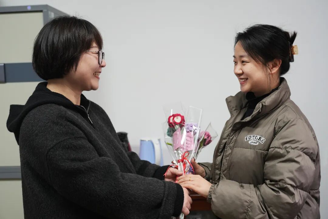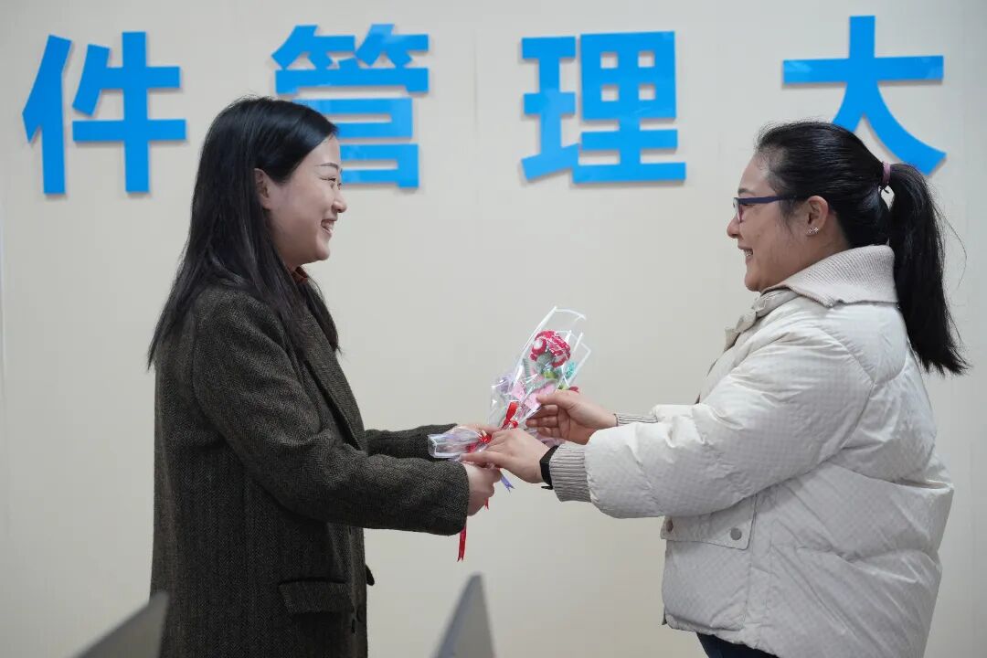 向全院女干警赠送花朵和最美的祝福。院领导和妇委会主任向全院女干警送上手工花束和节日祝福,勉励女干警继续在工作岗位上再接再厉,以巾帼力量顶起“半边天”。