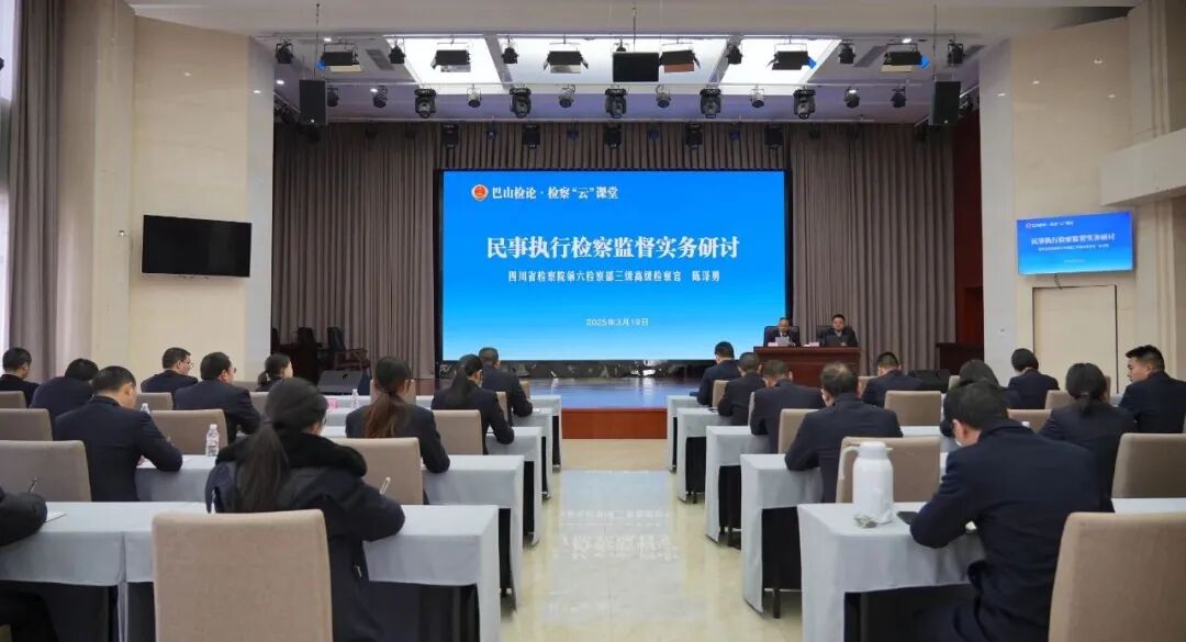 3月19日,巴中市人民检察院“巴山检论·检察‘云’课堂”又开课啦。本次培训邀请四川省检察院第六检察部三级高级检察官陈泽勇作题为“民事执行检察监督实务”的授课,课程既有深厚的理论知识,又有生动的案例分析,深入浅出,实打实地为巴中民事检察履职充电蓄能,为提升全市民事检察办案质效注入强劲动力。全市两级院民事行政检察分管领导和业务骨干现场聆听讲座。