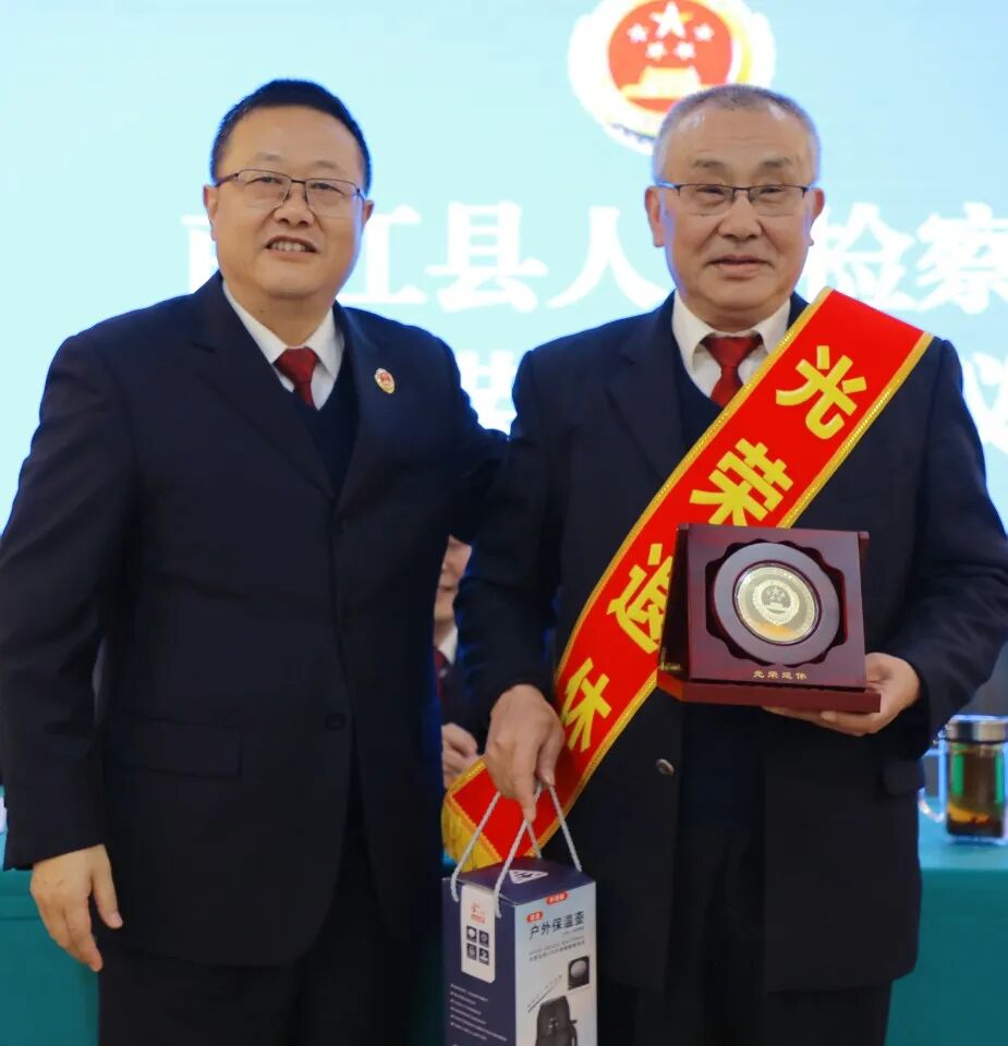 党组书记、检察长王波同志为2位退休干警颁发退休纪念章和纪念品,并希望两名退休同志在享受充实退休生活之余,继续发挥自身政治优势、经验优势和威望优势,一如既往地热爱、关心、支持南江检察工作,用丰富的经验、知识和智慧为南江检察工作积极建言献策,释放正能量、展示新风采。在职检察干警要以两位退休同志为榜样,将他们身上所体现的讲政治、顾大局、守纪律、敢担当、能奉献的优良作风传承下去,履职尽责,务实重干,为新时代检察事业创新发展贡献力量。