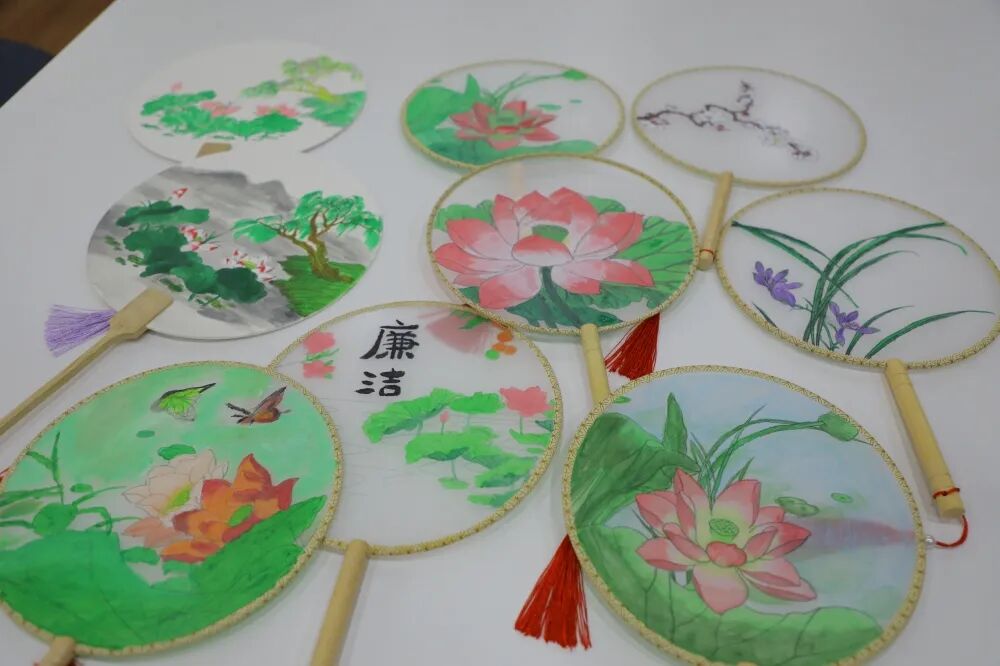 活动现场,一把把精美的团扇和一个个盛满色彩的颜料盘整齐放列在桌。干警们在仔细聆听完团扇的文化知识和绘制注意事项后,开启了属于自己的创作之旅。笔墨丹青,手绘廉洁。干警们选择以梅、兰、竹、菊、莲等廉洁元素为创作素材,精巧构思颜色的搭配和调色。经过细致晕染上色,把自己对“廉洁”的理解用心地呈现在团扇上,将原本素洁的扇面变得五彩斑斓起来。一把把清新雅致的廉洁扇,为酷暑带来清凉之余,也送来阵阵清廉之风,在润物无声中强化廉洁意识,根植廉洁从业理念。