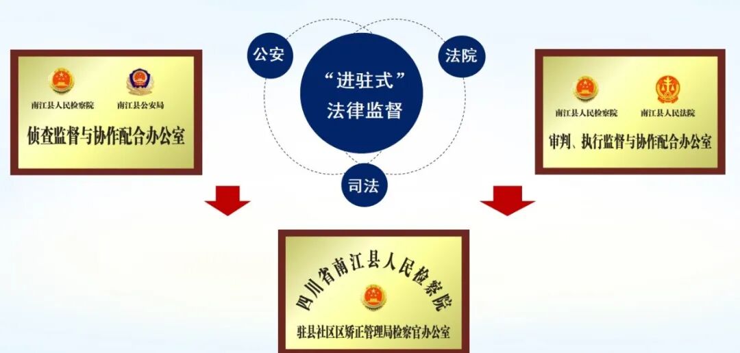 创新探索党委政法委执法监督与检察机关法律监督有机衔接机制,分别设立驻公安、法院、司法局监督与协作配合办公室,打通数据壁垒,实现关联应用。