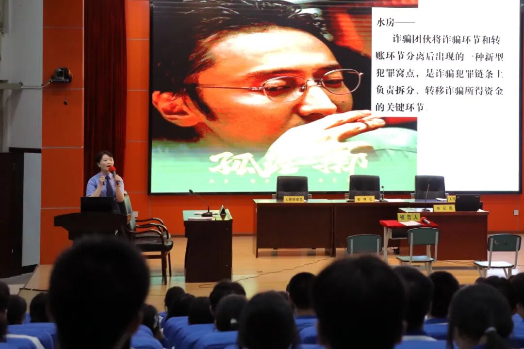 庭审模拟结束后,心语姐姐以热门电影《孤注一掷》给同学们讲解了反诈知识。