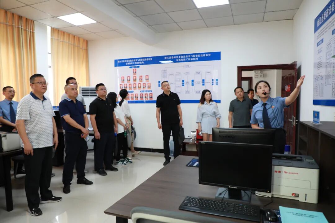 赵波副书记一行实地考察了分别设立于南江县检察院和南江县法院的“两项监督”工作办公室及审判、执行监督与协作配合办公室,参观了南江县检察院智慧检务中心、党建活动室和机关文化建设等场所,观看了《守正创新谋发展 “两项监督”护公正》专题片,并围绕“两项监督”工作开展座谈交流。
