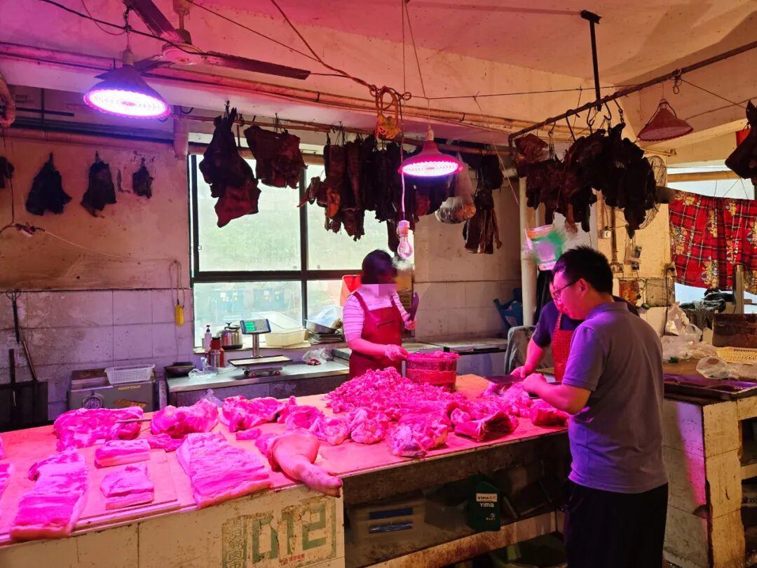经走访调查发现,南江县部分农贸市场的猪肉铺在销售生鲜猪肉时,使用的红色照明灯,明显改变了待售猪肉的感官性状。部分水果、蔬菜摊贩在销售产品时也在使用不同颜色的照明灯,让待售产品看上去新鲜饱满、秀色可餐。