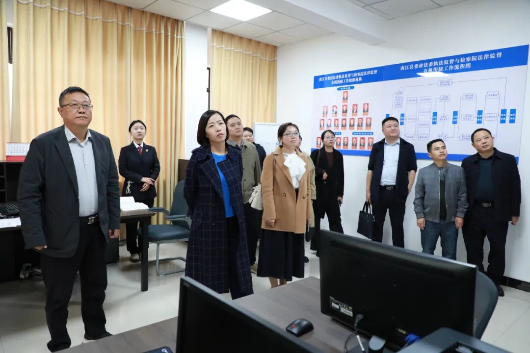 陈婧检察长一行参观了南江县检察院12309检察服务中心、青少年法治教育基地、智慧检务中心、党建阵地等场所,观看了《守望公平正义 铸就人民满意》《守正创新谋发展“两项监督”护公正》专题宣传片,双方围绕队伍建设、典型案例打造、绩效考核、业务能力提升等方面开展座谈交流。