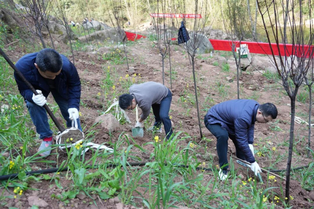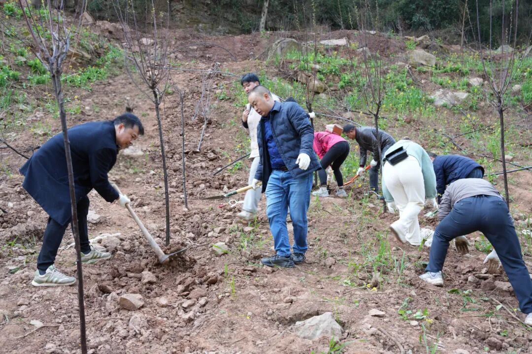 义务植树活动。100余名干部职工、镇村干部群众挥锹培土,种下三千余株水杉、红枫、红叶李等树种,为春日山野添绿意,为生态修复注活力!