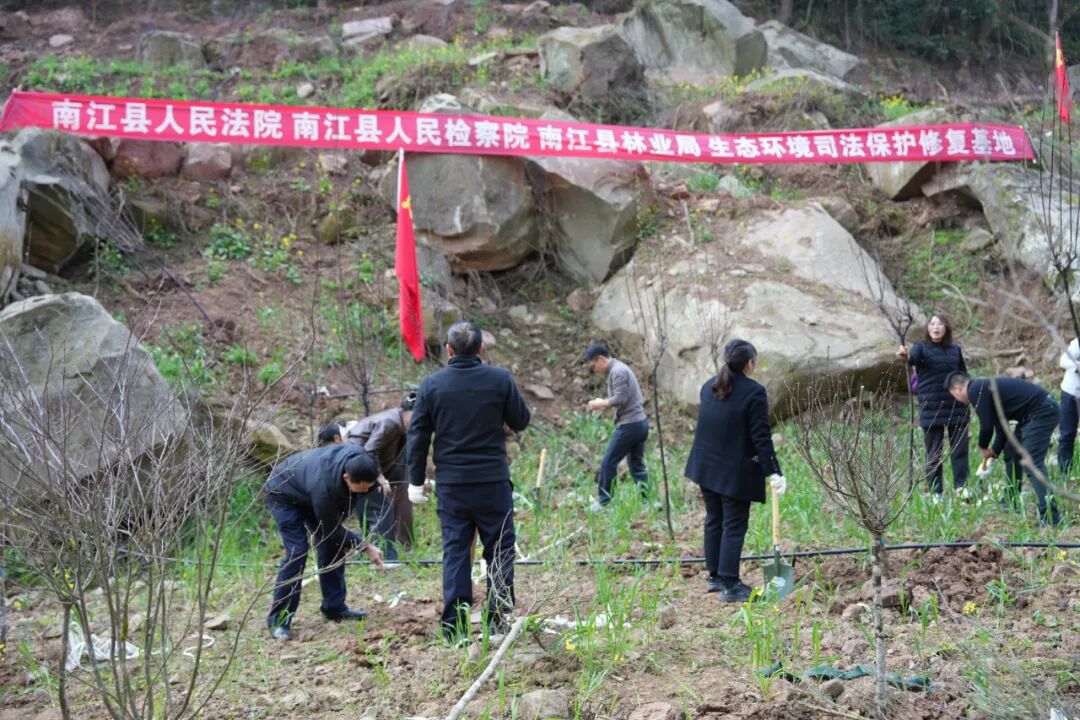 春染山川,法润民心。此次植树活动既是践行"两山"理念的生动实践,也是司法护航生态文明建设的创新探索。南江检察人正以“检察蓝”守护“生态绿”,用法治之笔绘就绿水青山与乡村振兴相融共生的美好画卷!未来,修复基地将持续开展补植复绿、普法宣传、生态监测等工作,让每一棵树木都成为司法守护的"活证据",让每一片山林都成为法治教育的"新课堂"。