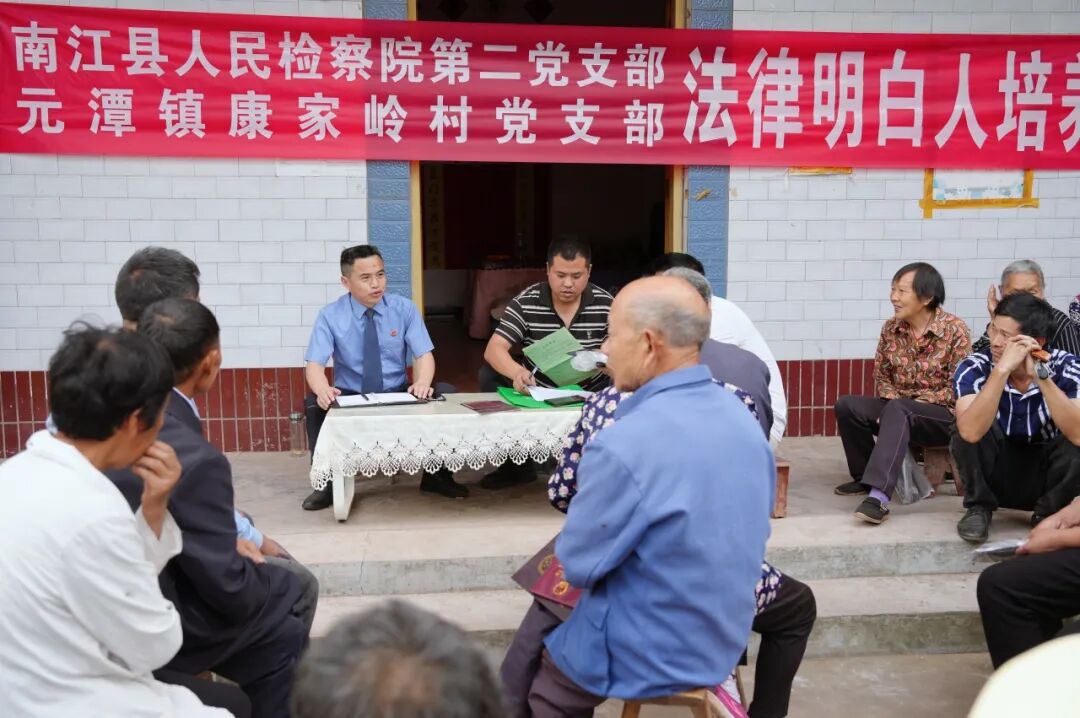 讲百姓听得懂的话,普人民用得上的法。近日,南江县人民检察院第二党支部走进元谭镇康家岭村,以“支部共建+法治赋能”模式,开展了一场别开生面的“法律明白人”培育活动。时值夏忙,党员干警将法律知识化作解暑良方,让法治清风洒满田间地头,为乡村振兴注入法治动能。
