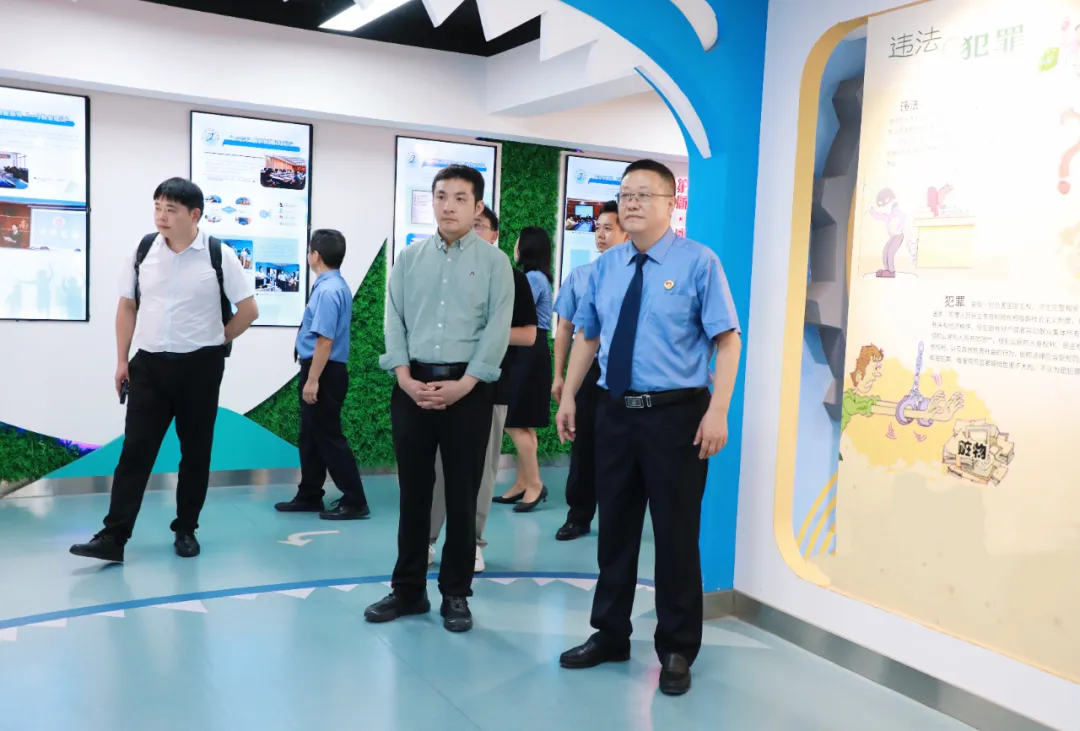 陈山一行参观了南江县检察12309检察服务中心、青少年法治教育基地、智慧检务中心、机关文化阵地场所观摩了南江县留守女童平安手环智慧监护平台,观看了《守望公平正义赢得人民满意》《守正创新谋发展“两项监督”护公正》《心尚法治·语化未来》等专题宣传片。