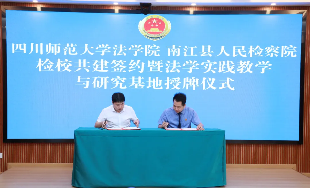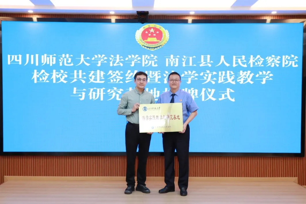 仪式上,双方签订了共建校外法学实践教育基地协议,四川师范大学法学院为南江县人民检察院法学实践教学与研究基地现场授牌。