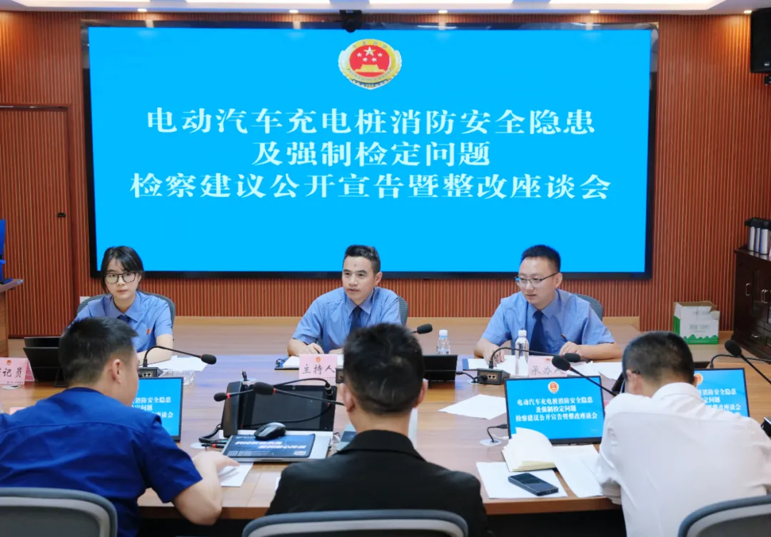 针对上述问题,南江县检察院向相关职能部门公开宣告送达检察建议并召开整改座谈会。会上,检察机关与相关职能部门座谈交流,进一步明晰各部门在电动汽车充电站安全隐患防治工作中的职能职责,推动形成整改合力,并达成初步整治方案。