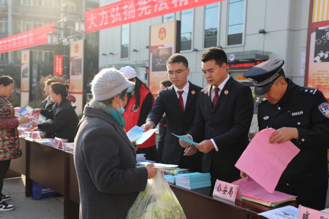 12月4日,第十个“国家宪法日”当天,南江县检察院的干警们出现在街头,开展以“大力弘扬宪法精神,建设社会主义法治文化”为主题的法治宣传活动。活动现场,检察干警主动向过往群众发放宣传资料,解读《中华人民共和国宪法》,同时结合检察工作职能,重点宣传了公益诉讼、防电信网络诈骗、司法救助、未成年人保护、12309检察服务等方面的常识,现场解答群众的法律问题,倡导广大群众成为宪法的积极践行者和传播者。