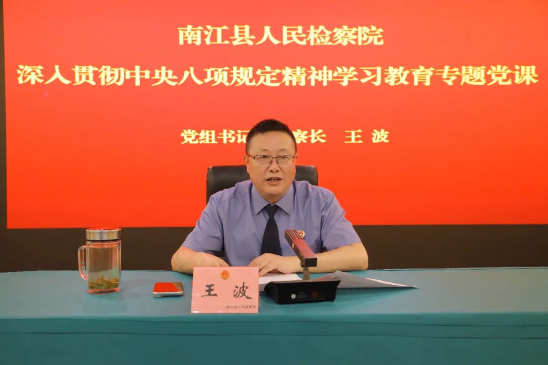 王波强调,深入贯彻中央八项规定及其实施细则精神,加强作风建设,是一项长期而艰巨的任务。要以此次学习教育为契机,持之以恒落实中央八项规定及其实施细则精神,持续在一体推进学查改中推动学习教育取得实效,努力推动检察工作高质量发展,为如期打赢摆脱欠发达县域地位攻坚战提供南江检察力量。