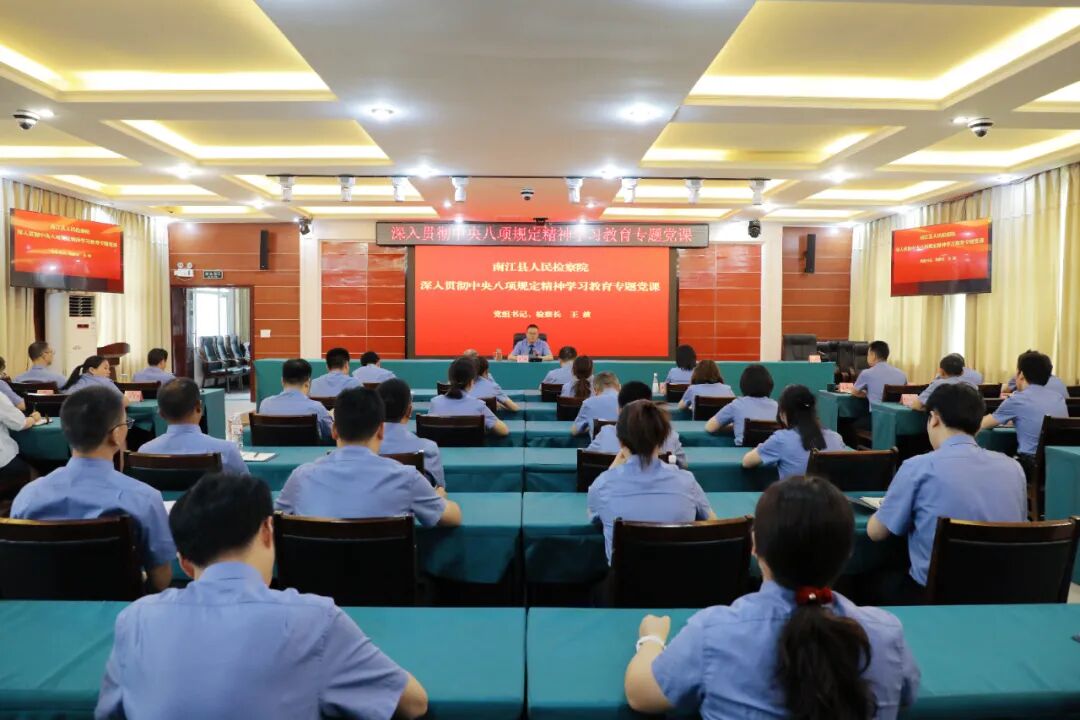 为庆祝中国共产党成立104周年,激励全体检察干警以习近平新时代中国特色社会主义思想为指引,持续推进深入贯彻中央八项规定精神学习教育走深走实,以优良作风全面履职、担当实干,7月1日,南江县检察院党组书记、检察长王波以“砥砺作风、担当使命,锻造新时代基层检察铁军”为主题讲授专题党课,全体干警参加。院党组副书记、常务副检察长冯永浪主持。