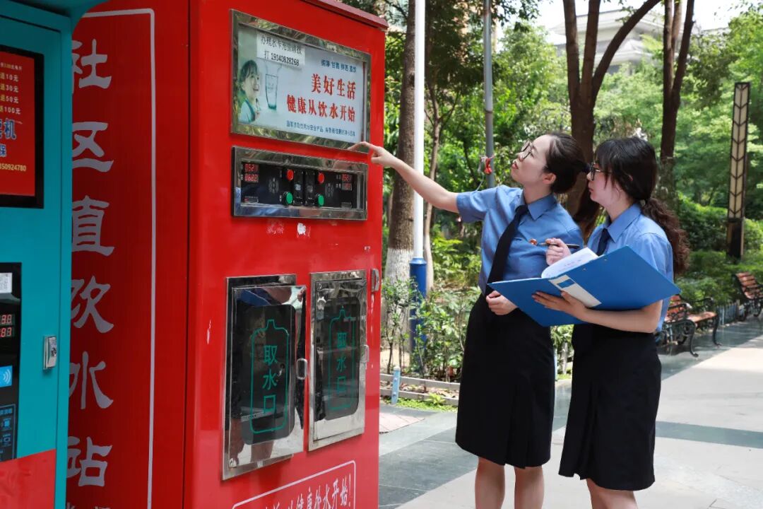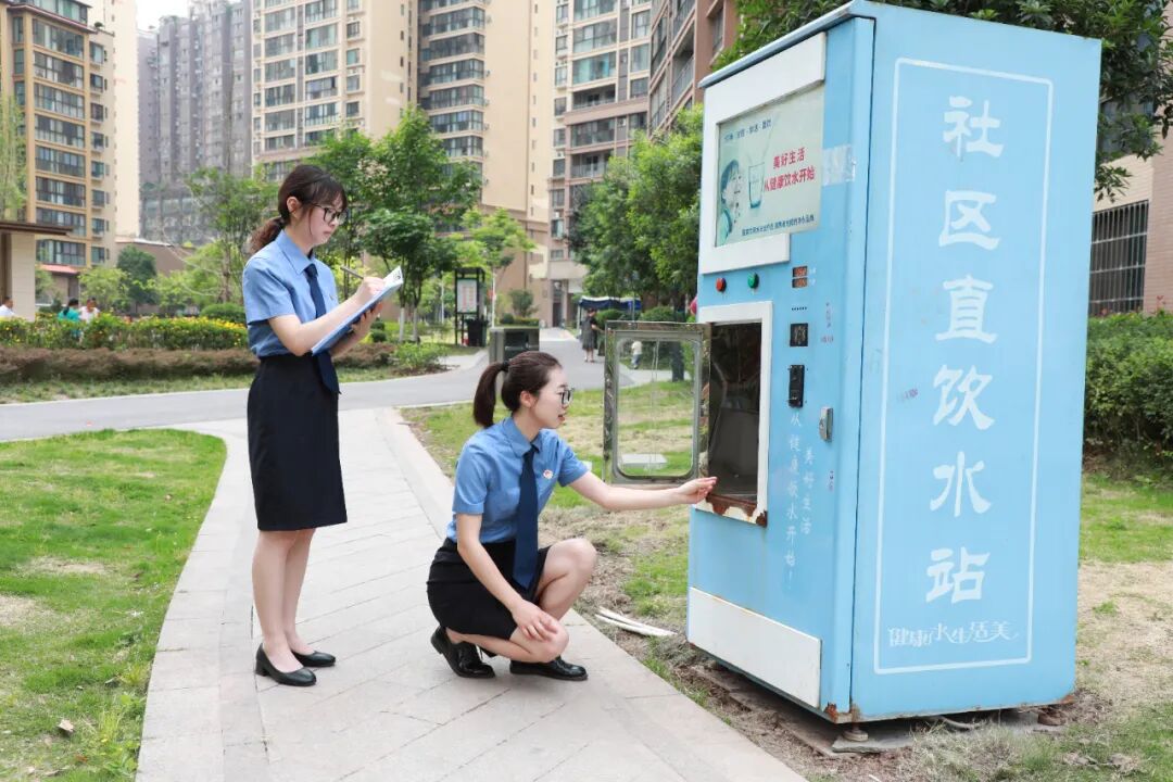 南江县检察院聚焦民生关切,针对现制现售饮用水开展公益诉讼专项监督。此次监督以辖区居民小区为重点摸排对象,通过实地勘查、与周边居民深入交流等方式,对现制现售饮水机的运营情况进行全面“体检”,发现一些令人担忧的问题。如饮水机机身设备普遍未公示营业执照、经营单位联系方式、卫生许可、水质检测及从业人员资质等关键信息,部分饮水机出现产品破损情况,设备清洗消毒、滤材更换和定期巡查检测工作落实不到位等。